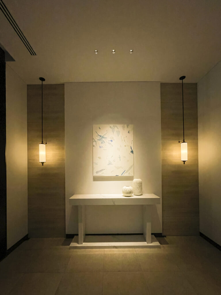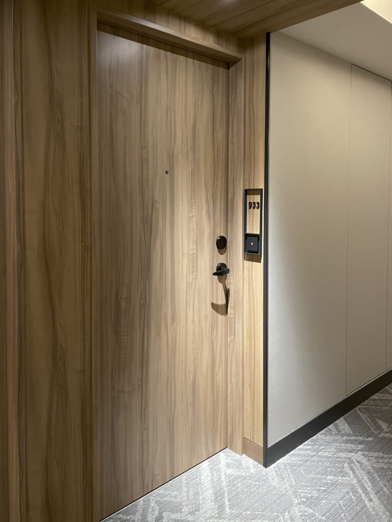 そしてエレベーターホールですが4機のエレベーターがあり、滞在中は待ち時間を感じたことがありませんでしたよ〜。