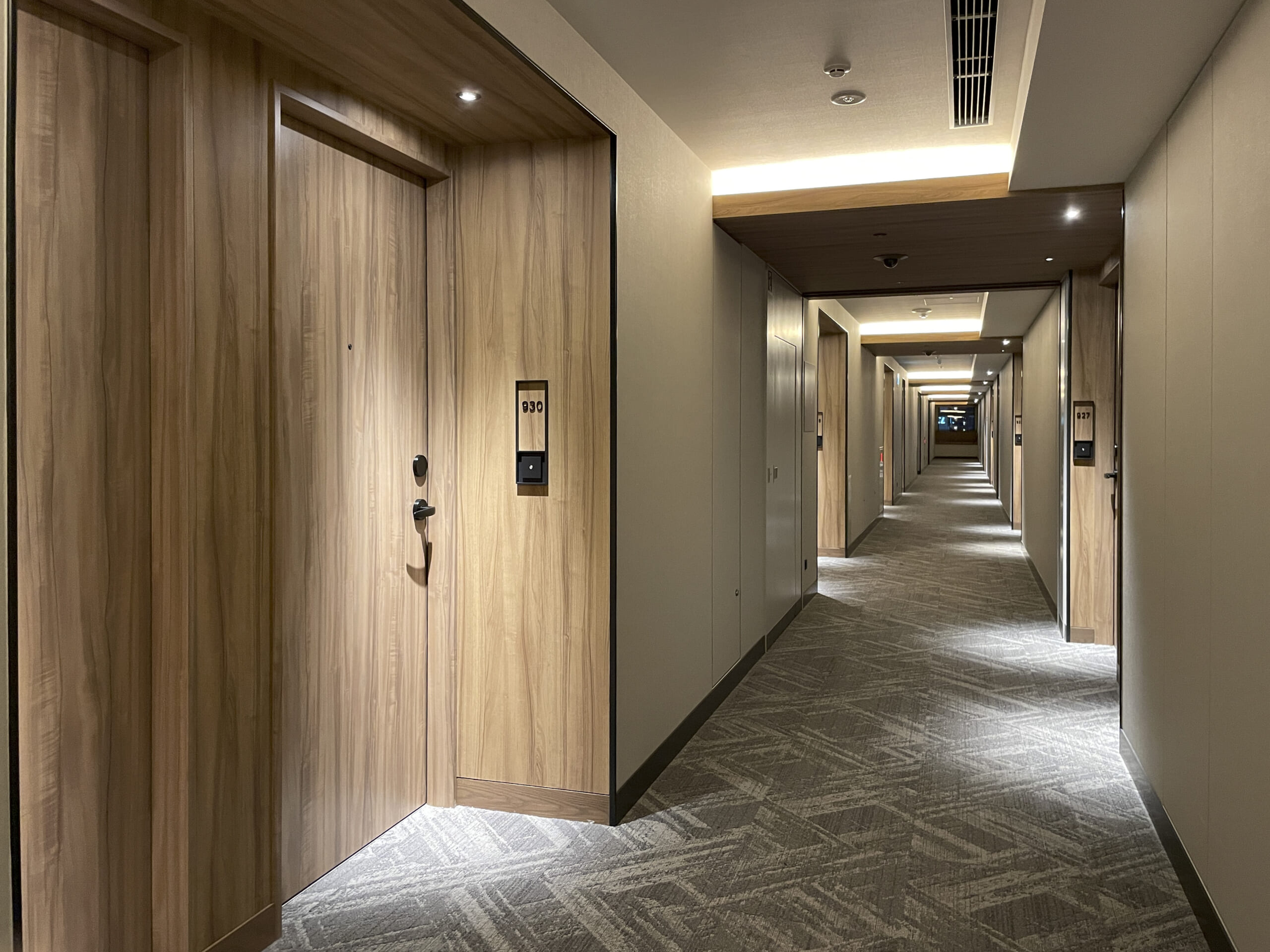 部屋の廊下は静かでエレベーターなどでも他のお客様との合流もなく目的階まで直行します。滞在中には途中で止まったことがなかったです。