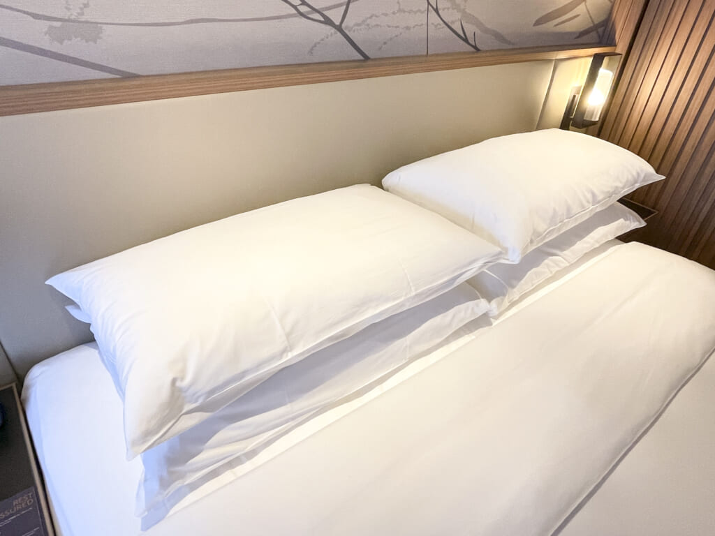枕も定番の2個づつでふかふか枕とやや低めの枕の組み合わせ。私は低めの方が好きでしたね。