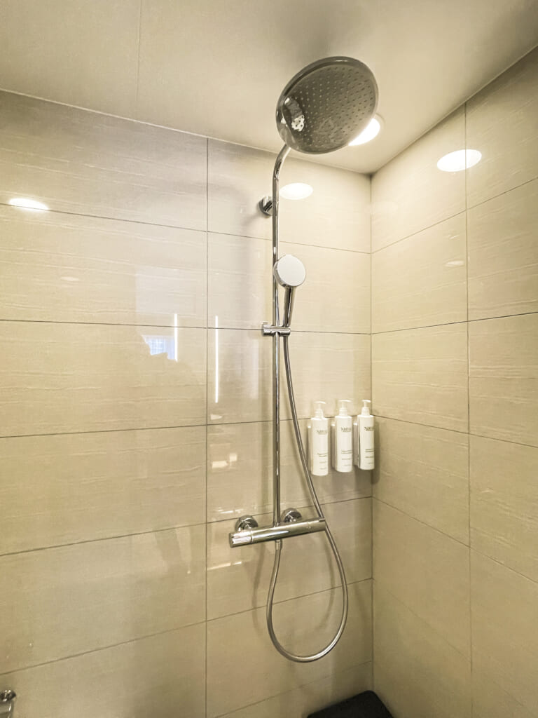 水圧も強く滝のように落ちてくる温水は気持ちがいいです。