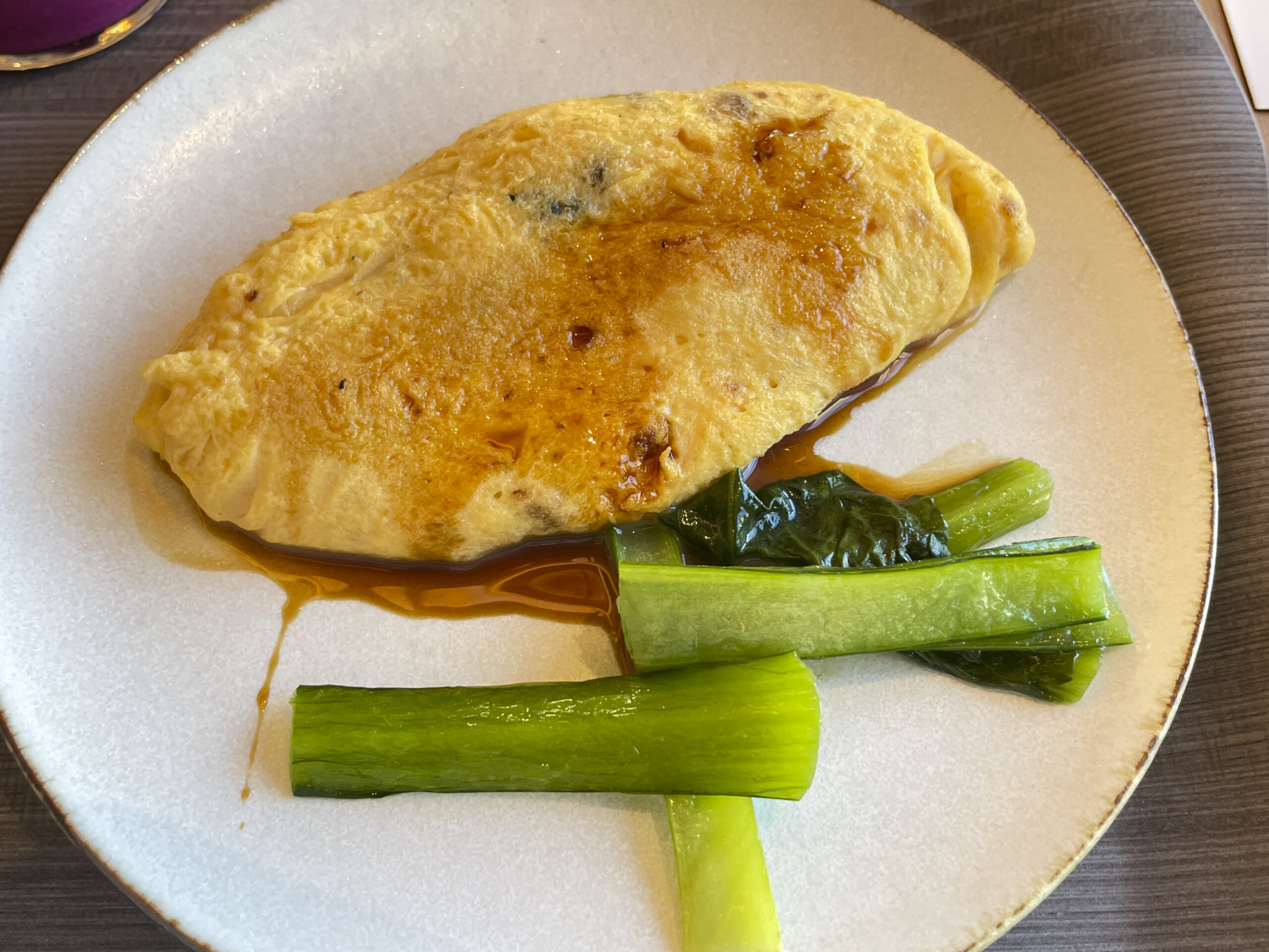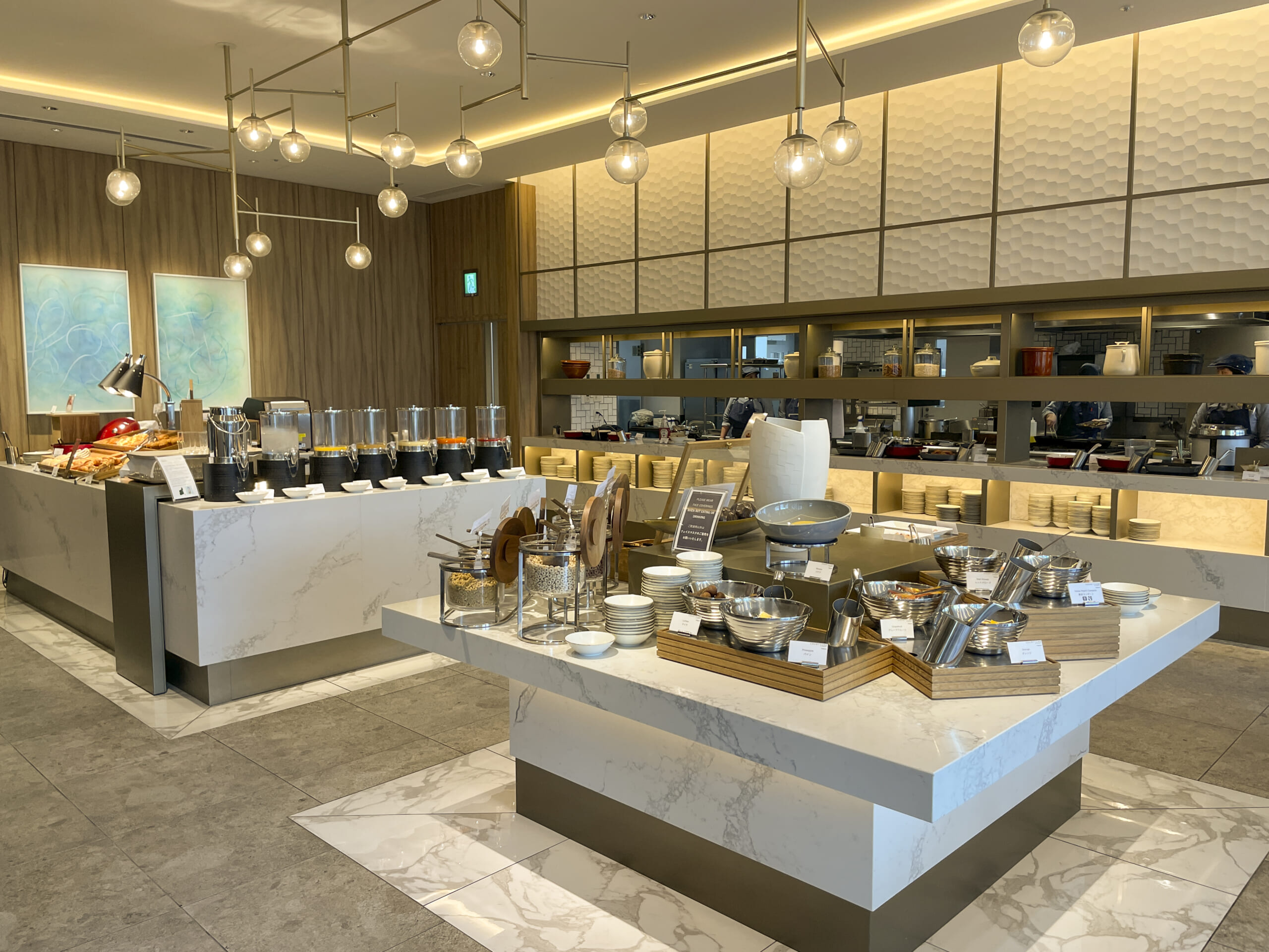 奥にはシェフが作ってくれるオムレツコーナーとフォー風に仕上げたきしめんコーナーもあります。