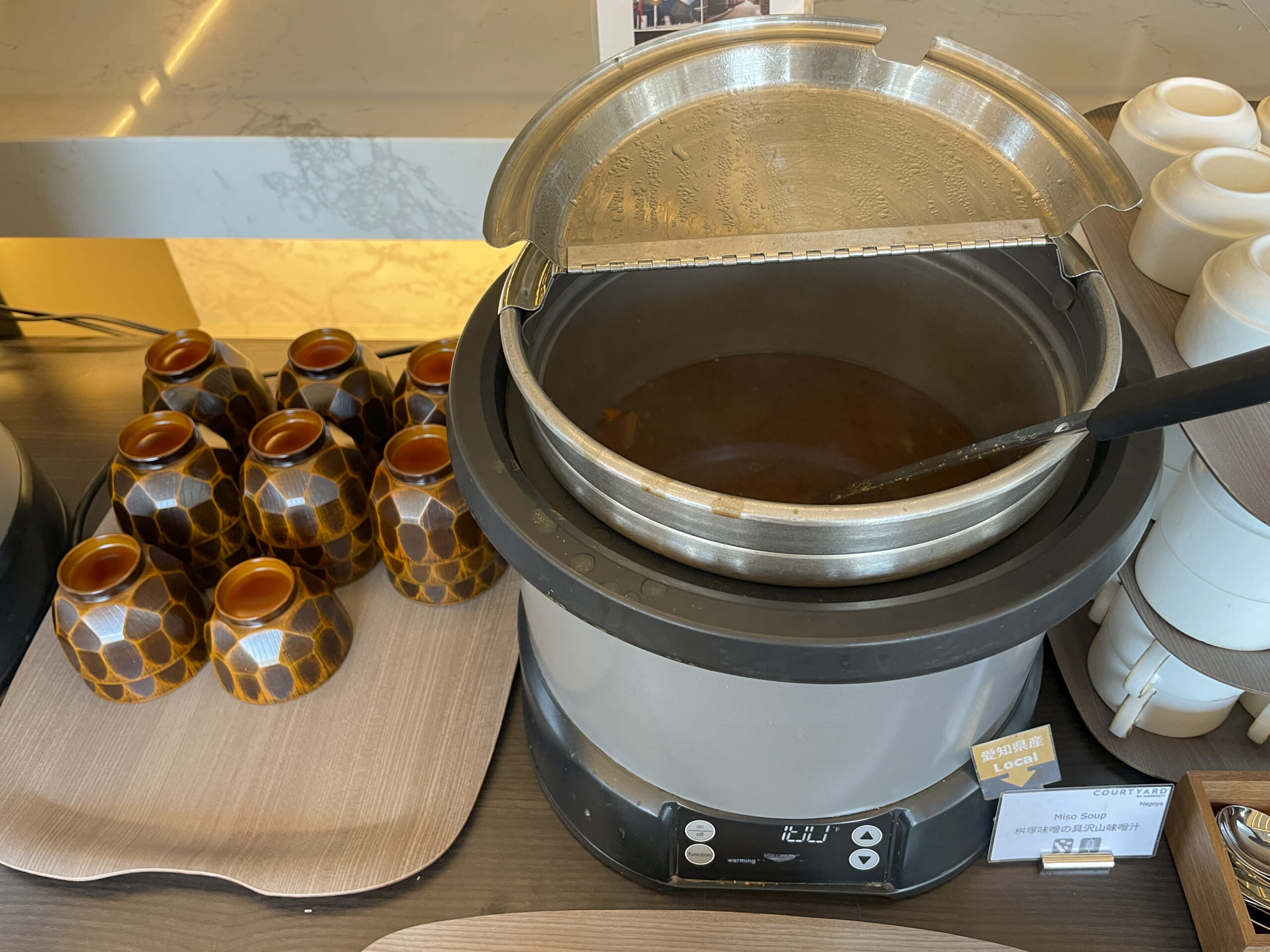 そしてこちらが、具沢山で赤味噌の味噌汁……。これはオススメですね〜