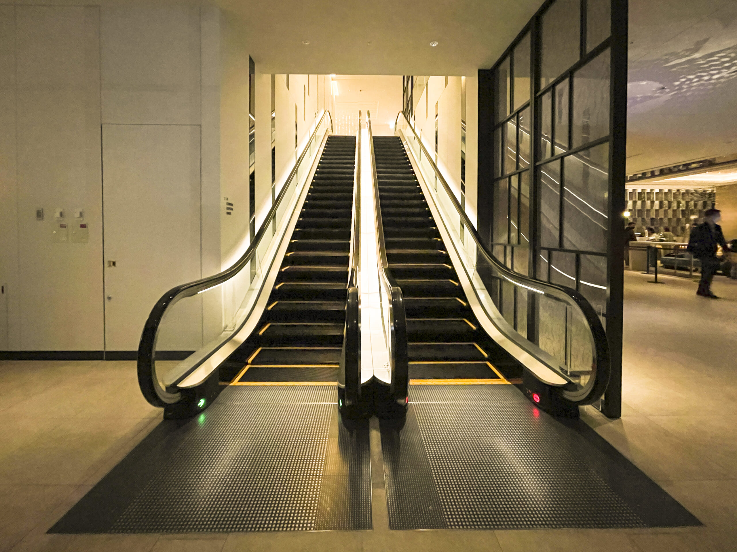 ロビーから宴会場へのアクセスはロビー左側の専用エスカレーターで。