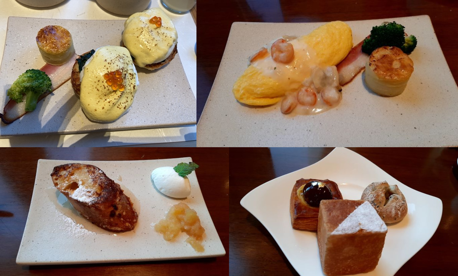 卵料理は選択できます。ベジタブルオムレツ、シーフードオムレツ、ミートオムレツ、アスターベネディクトなどがメニューに載っており、なんと!おかわりもできました。私はシーフードオムレツのほかにアスター ベネディクトも選択しました。