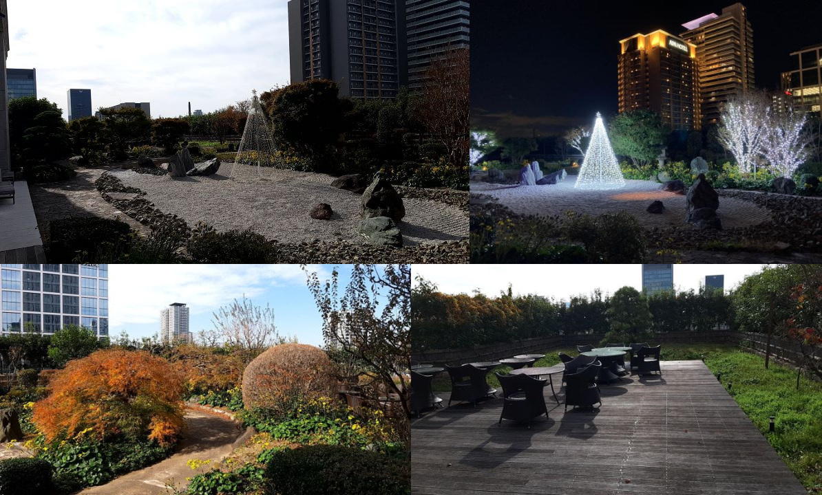 日本庭園になっており、枯山水が表現されています。都会のビルの上に「わびさび」を感じさせてくれる空間があるとは恐れ入りました。