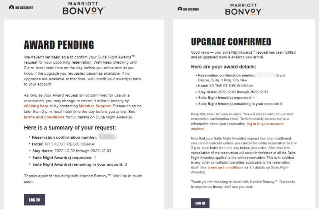 一方、アメリカのMarriott本部からも、11月27日(日)にSNA(スイートナイトアワード)を確認中との英文メールが届き、11月30日(水)にはSNAが確約されたとの英文メールも届きました。メールを見た時、よっしゃー!と思わず叫び、ガッツポーズもしてしまいました。